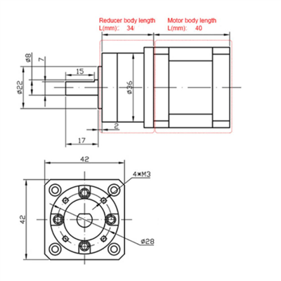 Longitud de la caja reductora 34mm