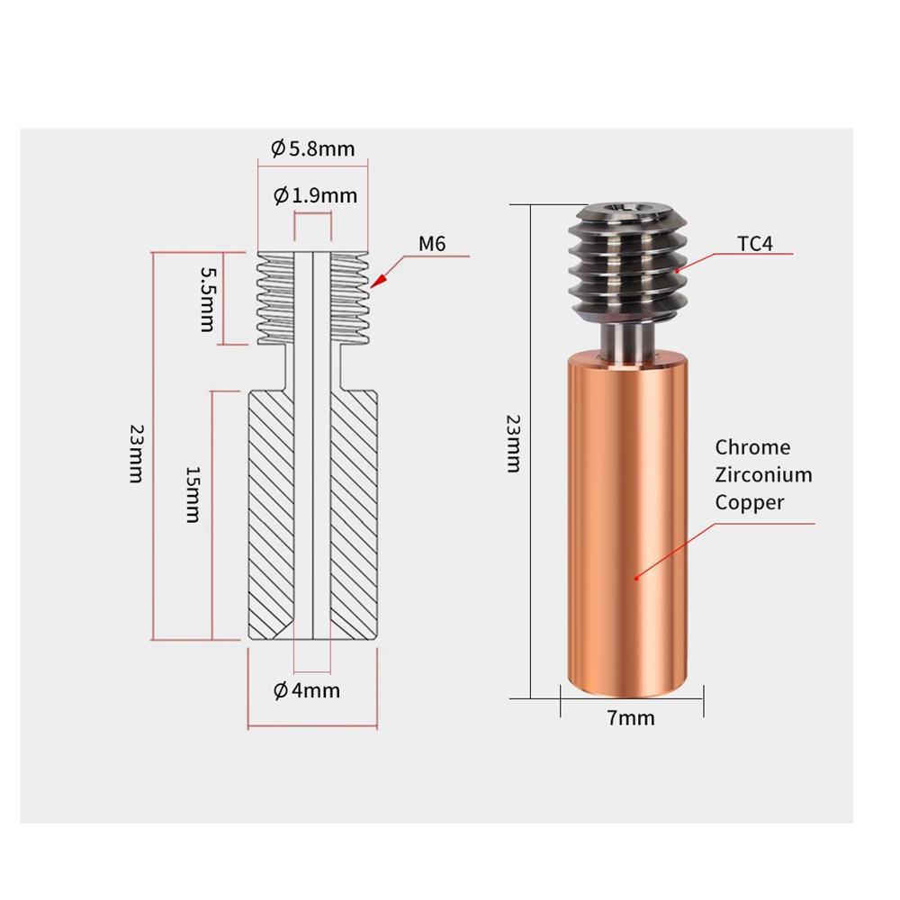 Compatible con Biqu 2 Rosca M6 Parte lisa 7mm Largo 23mm Compatible con bloque V5 que no tenga integrado la parte metalica del barrel Compatible con el siguiente bloque