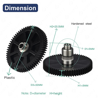 Este engranaje de extrusora está hecho de plástico (POM) y material inoxidable, que es ampliamente utilizado en el campo industrial, lo suficientemente fuerte como para alimentar filamentos.