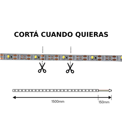 Puedes cortar tiras de luz entre cada LED a lo largo de la línea de corte sin dañar las otras tiras.