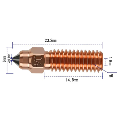 Fabricada con un cuerpo bimetálico de cobre de cromo circonio, esta boquilla ofrece una conductividad térmica superior para una disipación de calor eficiente.
