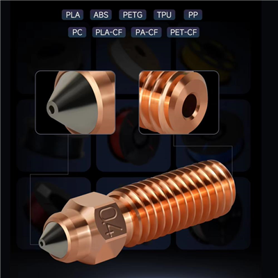 Aleaciones con la resistencia al desgaste del acero endurecido, lo que le permite imprimir fácilmente filamentos rellenos con una variedad de materiales abrasivos como GF CF o luminoso mientras mantiene el caudal y la capa intermedia fuerza de unión y calidad superficial.