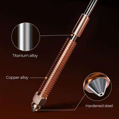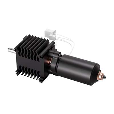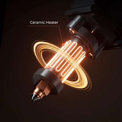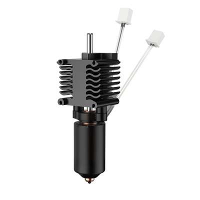 Incluye un nozzle de 0,4 mm quick-swap que facilita cambios rápidos entre materiales. Su diseño con calentador cerámico de 360° asegura un calentamiento uniforme y estable. La integración metálica del bloque hace que la instalación y el desmontaje sean simples y seguros.