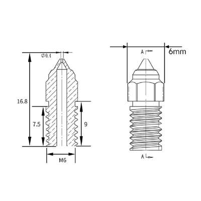 32428-Nozzle 0.6mm Pico Bronce Largo 17mm Ender 7 / 3 V3 SE / 5 S1