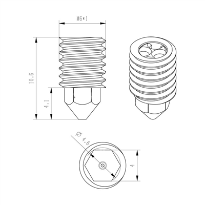 32631-Pico Acero Endurecido 1.75 CHT Alto flujo 0.6 Bambu Lab
