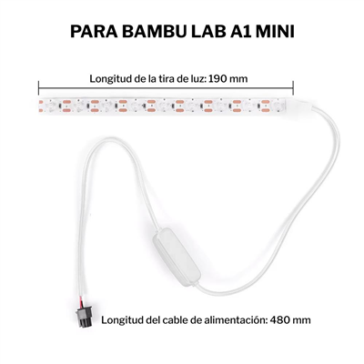 La alimentación se suministra a través de la interfaz Ams Lite en el cuerpo de la impresora, lo que la convierte en una adición perfecta a la configuración de su Bambu Lab. Con su alto brillo y durabilidad, esta tira de luz es una actualización esencial para cualquiera que busque mejorar su experiencia de impresión 3D.