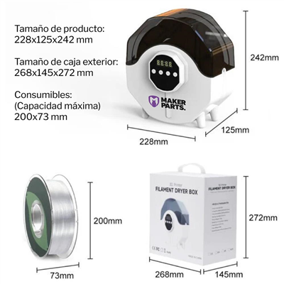 Compatibilidad más amplia: la capacidad máxima de la caja es de φ200 * 73 mm, con salida de filamento, compatible con diámetro de filamento de 1,75 mm/2,85 mm/3,0 mm. Uso de varios consumibles como PLA/ABS/PETG/PVA/ePA-CF/ePA-GF/PC/TPU-95A.