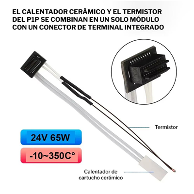 Este juego de termistor y tubo calefactor de 24 V y 65 W está diseñado para las impresoras 3D de las series Bambu Lab P1S y P1P. Proporciona un calentamiento eficiente y un control de temperatura preciso para sus necesidades de impresión.