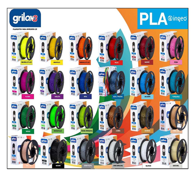 Rollo de 1kg de filamento PLA de 1,75mm para impresoras 3D. Marca: GRILON3 - Industria Nacional, calidad de exportación