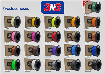 Rollo de 1kg de filamento PLA de 1,75mm para impresoras 3D. Marca: 3N3 - Industria Nacional