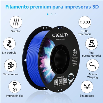 El filamento Creality CR-PETG presenta una gama de maravillosos colores y una gran resistencia mecánica para ser la base de tus impresiones en exteriores. El filamento PETG ofrece lo mejor del ABS y el PLA en una mezcla de tereftalato de polietileno (PET) con aditivos de glicol. Su equilibrio entre resistencia, flexibilidad y resistencia a la intemperie lo hace ideal para todo tipo de impresiones funcionales, especialmente para proyectos de exterior que deben resistir el sol o la lluvia sin deformarse. Creality 3D es una de nuestras marcas favoritas de fantásticas impresoras 3D y accesorios. Ahora, su filamento CR-PETG ofrece una opción optimizada para imprimir fácilmente con las impresoras de la serie Creality CR. Por supuesto, sus vibrantes colores y la calidad del PETG pueden embellecer las bases de impresión de cualquier impresora 3D para aficionados