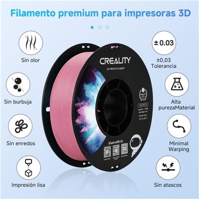 El filamento Creality CR-PETG presenta una gama de maravillosos colores y una gran resistencia mecánica para ser la base de tus impresiones en exteriores. El filamento PETG ofrece lo mejor del ABS y el PLA en una mezcla de tereftalato de polietileno (PET) con aditivos de glicol. Su equilibrio entre resistencia, flexibilidad y resistencia a la intemperie lo hace ideal para todo tipo de impresiones funcionales, especialmente para proyectos de exterior que deben resistir el sol o la lluvia sin deformarse. Creality 3D es una de nuestras marcas favoritas de fantásticas impresoras 3D y accesorios. Ahora, su filamento CR-PETG ofrece una opción optimizada para imprimir fácilmente con las impresoras de la serie Creality CR. Por supuesto, sus vibrantes colores y la calidad del PETG pueden embellecer las bases de impresión de cualquier impresora 3D para aficionados